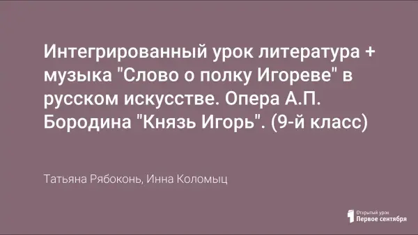 Интегрированный урок литература + музыка "Слово о полку Игореве" в русском искусстве. Опера А.П. Бородина "Князь Игорь". (9-й класс)