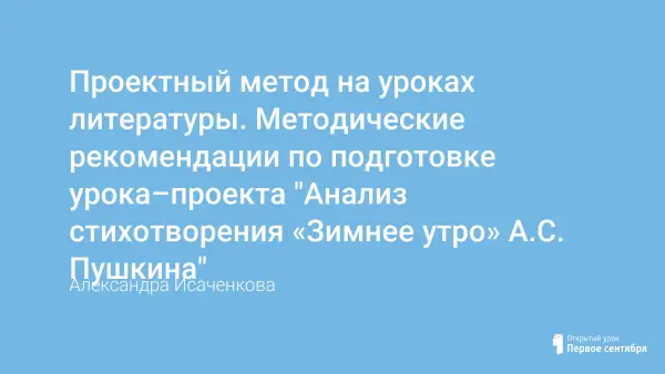 Применение проектно-исследовательского метода обучения имеет ряд преимуществ. Как организовать работу учителя при подготовке проекта: определить цели, временные границы, этапы деятельности, разработать темы - рассматривается на примере анализа стихотворения А.С. Пушкина «Зимнее утро».