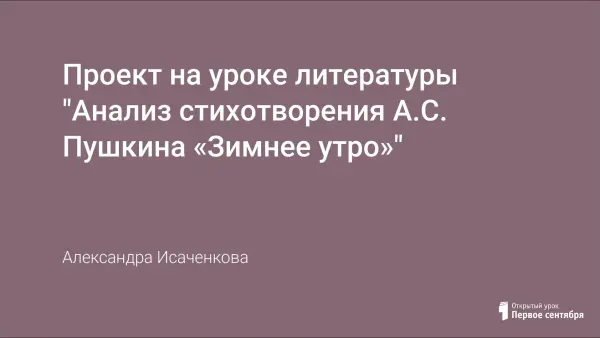 Современная жизнь требует от человека исследовательских навыков и творческого мышления, поэтому перед учителем стоит задача научить учащихся видеть, формулировать проблему, составлять план действий, следовать этому плану и анализировать полученный результат. Этим задачам отвечает метод проектов. Среди целей данного проекта – постижение смысла стихотворения А.С. Пушкина «Зимнее утро», совершенствование навыков анализа поэтического текста через совокупность учебно-познавательных приемов в результате самостоятельных действий с обязательной презентацией этих результатов.