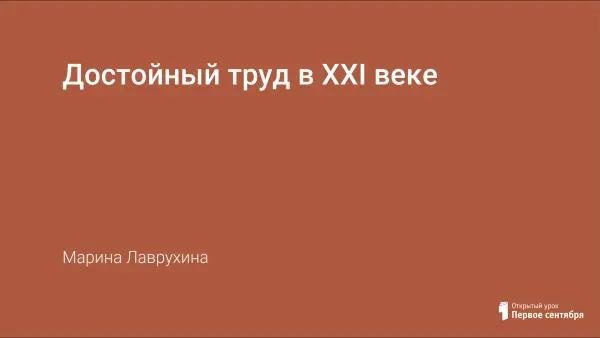 На занятии дается представление о социально-экономической и этической природе понятия «достойный труд» и его связи с качеством жизни.