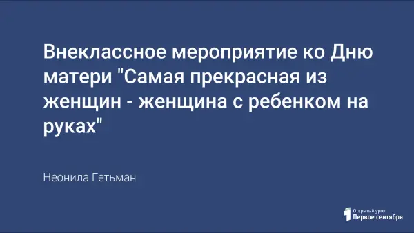 В предложенном сценарии внеклассное мероприятие проводится в форме литературно-музыкальной гостиной, используются активные формы работы. Особенность данного мероприятия – создание доверительной, теплой атмосферы между детьми и мамами (бабушками). Каждый эпизод праздника помогает установить контакт между ребенком и родителями, дает возможность взрослому испытать, насколько он хорошо чувствует и понимает своего ребенка.