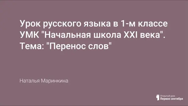 Урок посвящен началу знакомства детей с правилами переноса слов. Все этапы связаны друг с другом сказочным сюжетом, подчинены строгой логике изучаемой темы. Использование технологии проблемного обучения способствует более качественному усвоению знаний.