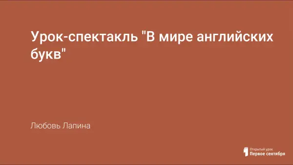 Урок-спектакль проводится на начальном этапе обучения английского языка, когда выучены все буквы алфавита. Обучающиеся с большим интересом учат стихи и песни, инсценируют сказки, готовят костюмы и рисуют буквы. Зал украшен буквами английского алфавита, детскими рисунками.