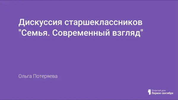 Дискуссия затрагивает интересующие молодёжь проблемы семьи и брака. Материалы дискуссии помогут в проведении классного часа, а также могут быть полезны заместителям директоров по воспитательной работе для разработки аналогичного мероприятия для старшеклассников.