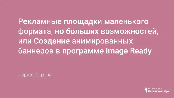 Урок предполагает освоение учащимися Web анимации в программе Adobe ImageReady. Знакомит учащихся с ключевыми понятиями по данной теме: баннер, FLASH-баннеры, Java-баннеры, технология Rich Media, формат баннера, морфинг. Перспектива: создание баннеров для школьного сайта.