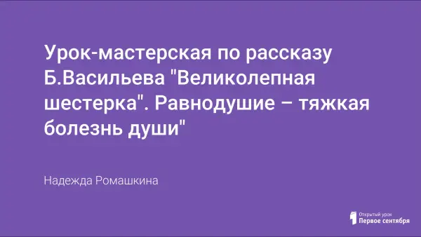 В рассказе Б.Васильева слышится боль за человека и окружающую среду. Шестеро мальчиков, накатавшись на старых лошадях, оставили их, привязав к дереву, умирать. Автор использует прием антитезы. Великолепной шестеркой называют мальчишек в летнем лагере: они очень талантливы.