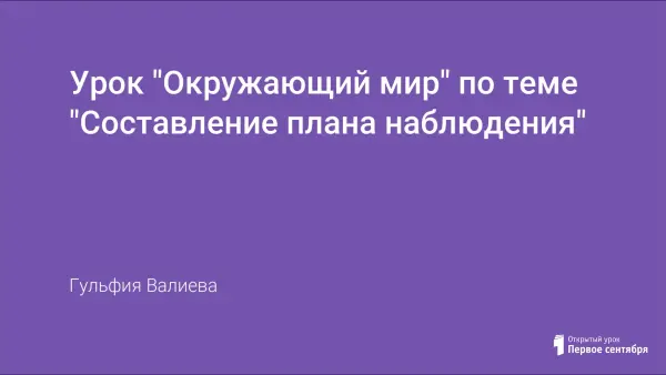 Урок "Окружающий мир" по теме "Составление плана наблюдения"
