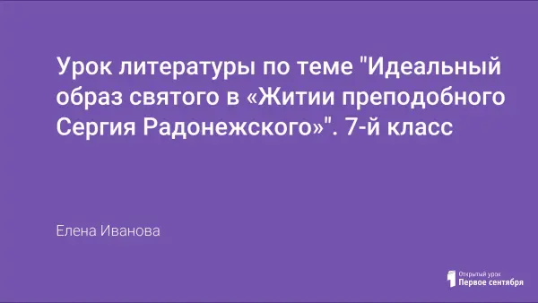 Урок представлен в разделе "Духовная литература", где дается представление о житийной литературе и ее особенностях. В ходе учебного занятия дети знакомятся с личностью Сергия Радонежского, определяют идеальные черты характера героя жития, совершенствуют навыки анализа текста. Урок направлен на духовно-нравственное развитие девятиклассников.