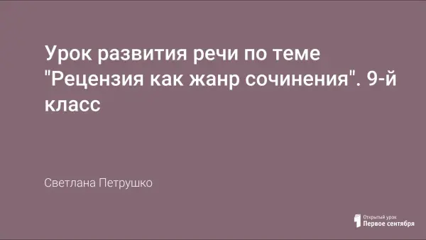 В работе приводится конспект занятия по теме «Рецензия как жанр сочинения». Данный урок строится как проблемное занятие и дает возможность научить школьника самостоятельно мыслить, наблюдать, анализировать, обобщать.