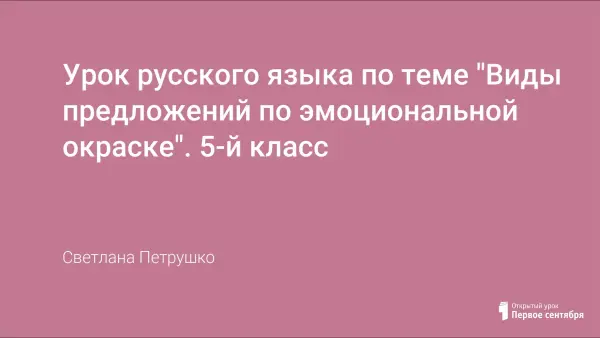 Цель занятия: вспомнить, что такое предложение, виды предложений по цели высказывания; выяснить, какие бывают предложения по эмоциональной окраске; учиться составлять предложения, давать им характеристику. На занятии учащиеся вспоминают изученный материал по теме «Предложение». Актуализация знаний проходит через тестовые задания.