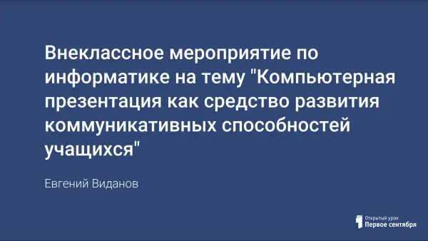 Внеклассные мероприятия являются одной из эффективных форм развития познавательного интереса к любому предмету, способствуют более глубокому и прочному усвоению изучаемого материала. Разработка внеклассного мероприятия по информатике показывает, как можно использовать компьютерные презентации для развития коммуникативных способностей учащихся.