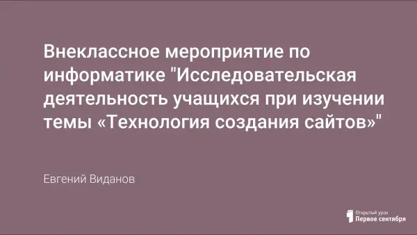 Разработка внеклассного мероприятия показывает, как можно организовать исследовательскую деятельность учащихся при изучении темы «Технология создания сайтов».