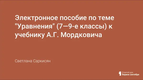 Данное электронное пособие призвано помочь педагогу и учащимся при прохождении и при итоговом повторении темы "Уравнения" в 9-м классе. В пособии представлены некоторые факты из истории алгебры, теоретические сведения, необходимые для решения различных видов уравнений, подробно разобраны примеры; приложении представлены дифференцированные карточки для закрепления пройденного материала и для самостоятельной работы.