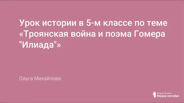 Урок ставит своей целью формирование у учащихся представления о Троянской войне как историческом событии, знакомит учащихся с выдающимся произведением Гомера - поэмой "Илиада". Основу урока составляет беседа преподавателя с использованием ИКТ и работа учащихся в малых группах с различными источниками информации.