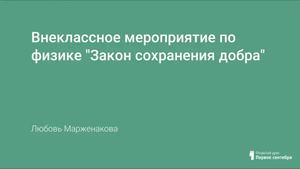 После прохождения темы «Законы сохранения в механике» можно провести внеклассное мероприятие, в котором распространить законы физики на нравственные категории добра и зла, используя физические принципы определения понятий, явлений, физических величин. Данное мероприятие направлено на воспитание милосердия, добра, нетерпимого отношения к злу.
