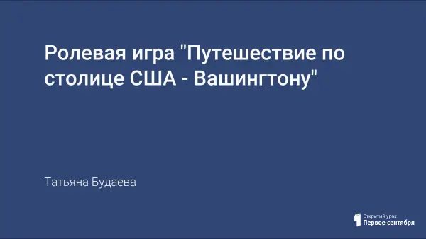 Урок носит форму закрепления материала с новыми данными, то есть является комбинированным. Урок спланирован в виде ролевой игры–путешествия по столице США - Вашингтону, в ходе урока используется слайды о достопримечательностях Вашингтона. Урок содержит дополнительные материал, не отраженный в учебнике.