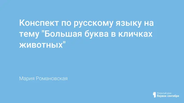 Урок помогает закрепить знания детей о написании большой буквы в кличках животных.