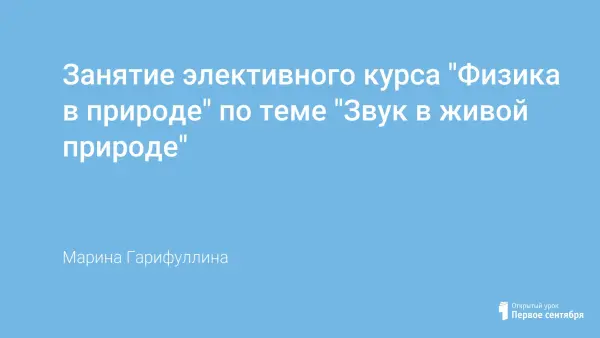 Представленное занятие элективного курса расширяет знания учащихся по теме «Звук», повышает интерес к изучению физики, учит применять знания в новой ситуации, объяснять звуковые явления в природе, стимулирует познавательную активность и творчество. Сопровождается презентацией.