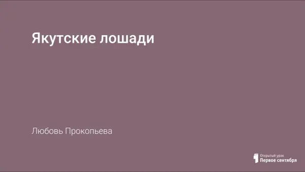 В статье представлена работа о якутских лошадях. Многие наши сверстники не знают о существовании лошади якутской породы, о ее происхождении. А якутская лошадь – это одна из самых древних пород.