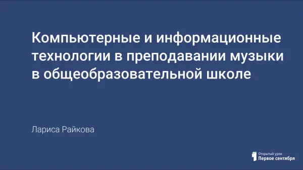 Преподавание уроков музыки как нельзя лучше подходит для использования информационно-коммуникационных технологий в общеобразовательной школе: внедрение ИКТ оптимизирует образовательный процесс, видоизменяет традиционные формы подачи информации, обеспечивает легкость и удобство. Оцифрованные фото и видеоматериалы создают базу для разработки презентаций для уроков. Компьютерные образовательные программы в игровой форме предлагают виртуальное посещение музеев, картинных галерей, концертных залов, дают возможность проникнуть в тонкости творчества живописцев, композиторов, архитекторов, скульпторов. Ресурсы Интернета позволяют «оказаться» в самых интересных местах на планете и найти ответы на вопросы, возникающие при изучении теоретических дисциплин.