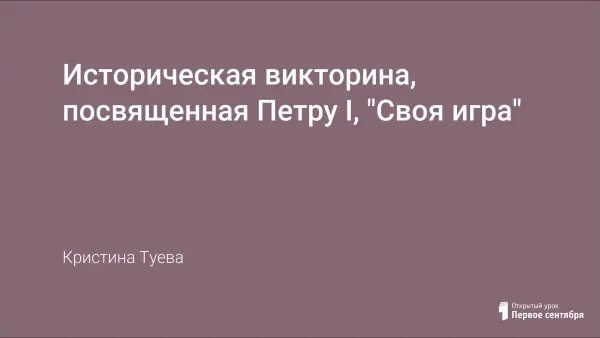 Методическая разработка представляет собой внеклассное мероприятие, которое проводится среди обучающихся 4 классов. Аналог телевизионной викторины «Своя игра». Мероприятие приурочено к празднованию 350-летия со дня рождения Петра I. Для участия в викторине необходим широкий кругозор, знания, полученные в ходе изучения темы. Данную игру можно использовать на уроках окружающего мира, литературы, а также на внеурочной деятельности или как внеклассное мероприятие. Например, провести игру на параллель.
