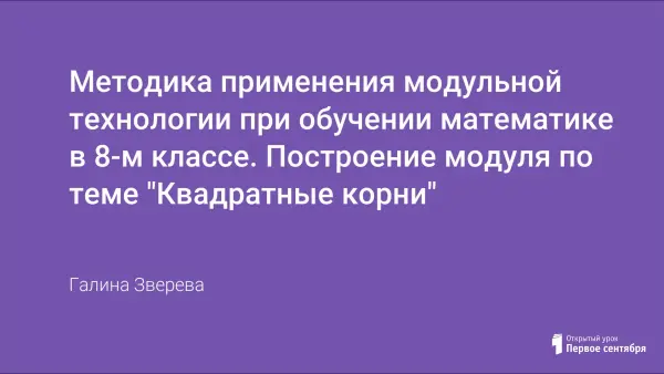 Тема "Квадратные корни" не содержит объёмного теоретического материала, а спектр применения его в физике и математике достаточно широк. Желание углубить знания учащихся по данной теме, сформировать как частные, так и обобщённые умения и навыки, привели к тому, что мы выбрали тему "Квадратные корни" для построения модульной программы.