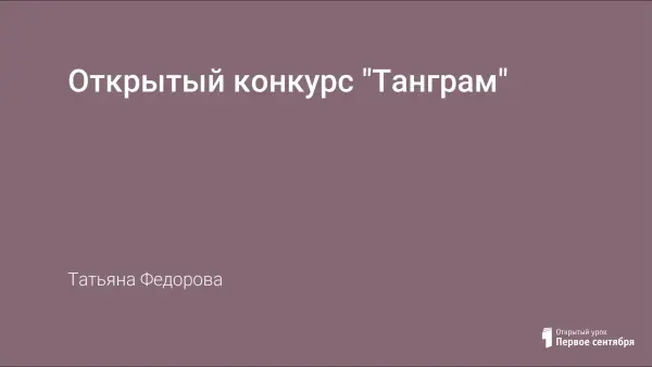 Конкурс посвящен китайской головоломке «Танграм». Основные цели конкурса: развитие логического и пространственного мышления; формирование элементарных умений преобразовывать форму предметов; создание положительной мотивации к изучению курса черчения; развитие творческих способностей; активизация мыслительной деятельности; воспитание наблюдательности, усидчивости.