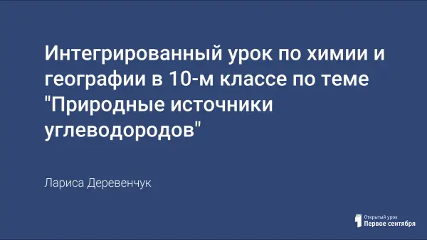 Интегрированный урок проводится с целью расширить и обобщить знания учащихся о природных источниках углеводородов: их составе, физических свойствах, размещении месторождений на территории России и мира, способах добычи, переработке, рассмотреть перспективы изменения структуры ТЭК. Представленный материал отражает возможность использования компьютерных технологий при изучении химии по программе О.С. Габриеляна.