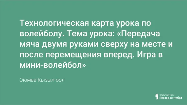 Цель урока: обучить передачу мяча двумя руками сверху на месте и после перемещения вперед.