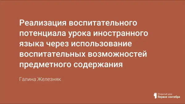 Основная ценность иностранного языка заключается и в его воспитательном потенциале. И потенциал этот просто огромен! У иностранного языка как учебного предмета есть одна особенность: на наших уроках мы обучаем общению, которое по самой своей сути – личностно. Ученик не просто рассказывает о чем-то, он высказывает свое мнение, свое отношение к предмету общения. Именно это свое, личностное отношение и является связующим моментом, посредством которого мы пытаемся реализовать свое воспитательное воздействие. Потенциальные возможности нашего предмета заключаются, прежде всего, в содержании используемых материалов, методической системе обучения и в личности самого учителя. На своих уроках мы знакомим учащихся с историей и жизнью выдающихся людей, традициями и обычаями стран-носителей языка.