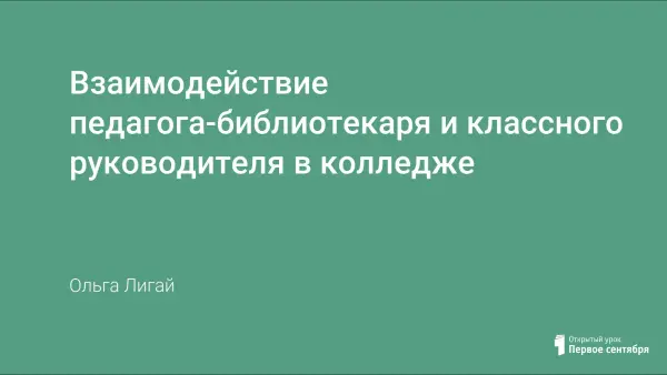 Взаимодействие педагога-библиотекаря и классного руководителя в колледже