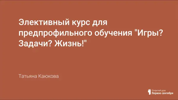 Вероятностные понятия и основанные на них статистические методы в настоящее время находят все более широкое применение в разных областях науки и в практической деятельности человека. Поэтому, с целью оказания практико-ориентированной помощи в приобретении личного опыта выбора собственного образования для предпрофильной подготовки учеников 9-го класса, предлагается элективный курс «Игры? Задачи? Жизнь!». Для изучения этого курса не обязательно обучаться по специальной программе.
