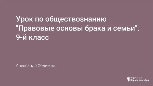 Урок направлен на дальнейшее развитие у учащихся правовой грамотности семейных отношений. Урок сконструирован таким образом, что каждый ученик получает возможность для самореализации как будущий супруг.