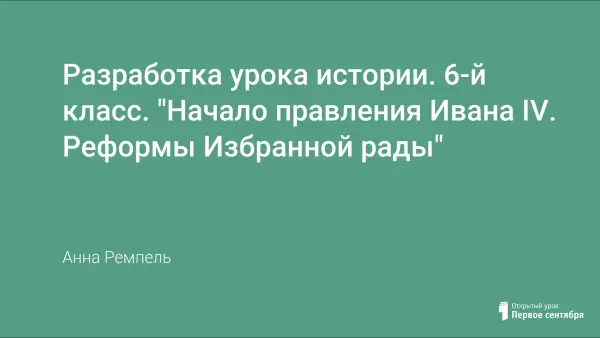 Разработка урока истории. 6-й класс. "Начало правления Ивана IV. Реформы Избранной рады"