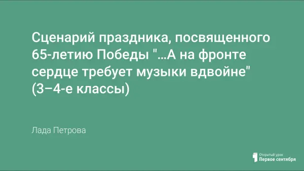 Сценарий праздника проводится накануне празднования Дня Победы. Мероприятие готовит параллель 3-х или 4-х классов для ветеранов и родителей. В сценарий включены инсценировки популярных военных песен, частушки, стихотворения, исторические факты времен Великой Отечественной войны.