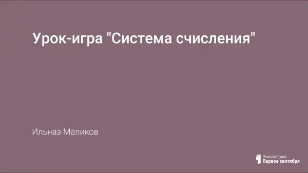 Урок-игра на закрепление и контроль знаний по теме. Учебная группа из двух 10-х классов разбивается на четыре команды по 6 человек. Каждая команда выбирает своего капитана и дает название своей команде. В ходе подготовки к уроку командам было дано задание придумать стихотворение из одного куплета на тему «Системы счисления» по 5, 6, 7 и 8-балльной системам счисления. В ходе игры применяется презентация.