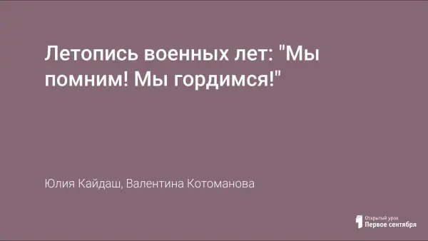 Летопись военных лет: "Мы помним! Мы гордимся!"