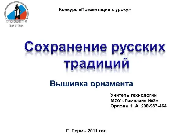 Урок рукоделия в 6-м классе "Сохранение русских традиций. Вышивка орнамента"