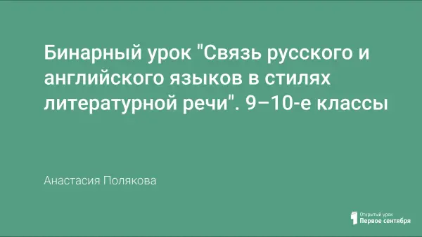 Целью урока является совершенствование навыков чтения английского текста и его перевода с сохранением стилевой принадлежности и выявлением общих черт и различий в стилях русской и английской речи. Соединение дисциплин «русский язык» и «английский язык» позволяет судить об актуальности и целесообразности проведения бинарных занятий. Такие уроки показывают связь между предметами, делают обучение целостным и системным, формируют у учащихся убеждение в связанности предметов, целостности мира.