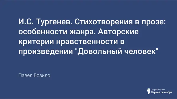 Цели урока: повторить знания учащихся об особенностях художественной литературы как искусства слова; продолжить знакомство с творчеством И.С. Тургенева - мыслителя, художника; дать представление о мировоззрении, гражданской позиции, взглядах писателя; раскрыть особенности жанра "стихотворение в прозе", авторские критерии нравственности стихотворений в прозе; развивать умение анализировать текст.