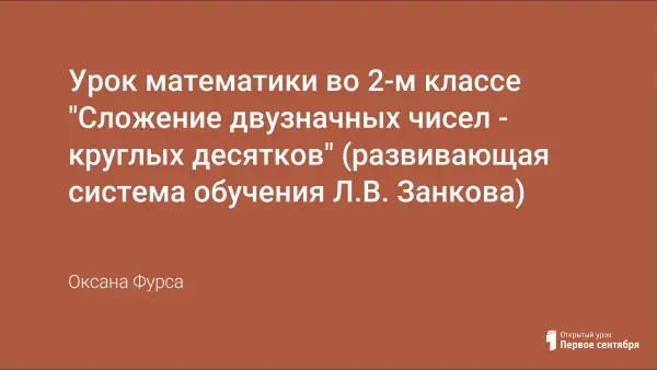 Автор статьи формирует навык сложения двузначных чисел - круглых десятков; развивает умения делать выводы, сравнивать, обобщать, выделять лишнее; воспитывает культуру интеллектуального и коллективного труда.