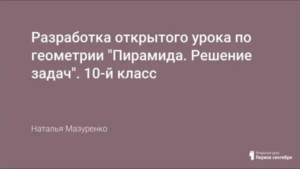 Цели урока: повторить понятие пирамиды, основные виды пирамиды; повторить элементы пирамиды: основание, боковые грани, вершина, боковые рёбра, высота пирамиды, высота боковой грани; формирование умений учащихся в решении тематических задач; расширить представления учеников о пространственной геометрической фигуре – пирамиде – через усвоение достижений культуры человечества.