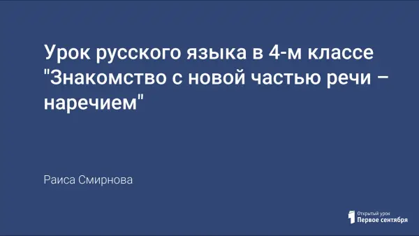 Учебный материал, даже самый трудный, становится понятным и простым для обучающихся, если они сами "докапываются" до истины. На этом уроке дети исследуют новую часть речи - наречие. Учитель только направляет их действия. Как правило такие уроки остаются в памяти ребенка и подталкивают его к новым исследованиям.
