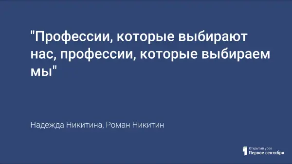 "Профессии, которые выбирают нас, профессии, которые выбираем мы"