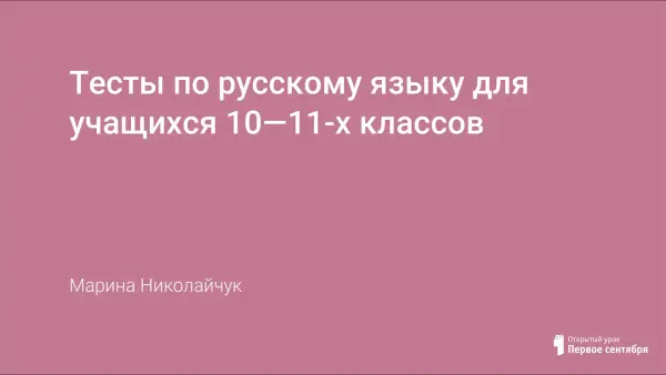 Материал адресован преподавателем русского языка 10—11-х классов для проверки знаний, умений учащихся по русскому языку. Цель работы - предложить материалы для тренировочных упражнений по русскому языку, с помощью которых можно объективно выявить уровень знаний учащихся по русскому языку. Ключи к тестам расположены в конце работы. Они позволяют учителю легко проверить выполненные задания.