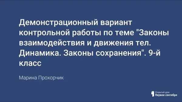 В статье предлагается план контрольной работы, содержащейся в сборнике А.В. Громцевой "Контрольные и самостоятельные работы по физике" к учебнику А.В. Перышкина, Е.М. Гутник "Физика. 9 класс", на основании которого составлен демонстрационный вариант и критерии оценивания. В плане работы дается информация о каждом задании: тематическая принадлежность, уровень сложности, тип задания, примерное время выполнения и максимальный балл.