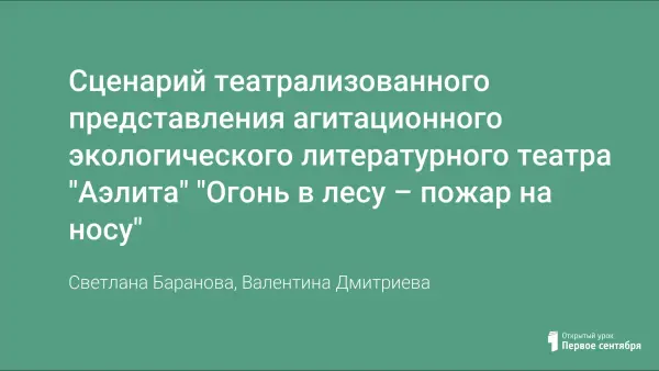 Сценарий театрализованного представления агитационного экологического литературного театра "Аэлита" "Огонь в лесу – пожар на носу"