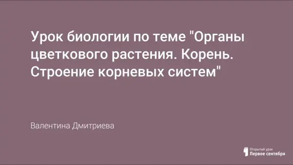 Урок посвящен корню – осевому вегетативному органу листостебельного растения, выполняющего функции почвенного питания и закрепления растения на земле. Способствует формированию понятия об особенностях строения и функционирования корневых систем. Составление общего плана изучения органа растения.