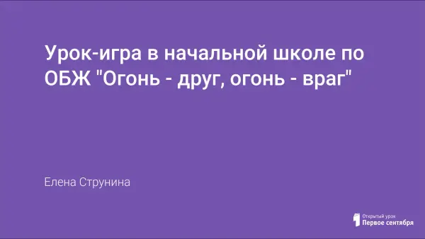 Методическая разработка этого урока-игры может быть использована как внеклассное занятие, так и на уроке ОБЖ в начальной школе. Цель урока — расширить и обобщить знания детей о правилах пожарной безопасности, поведение при пожаре. Выяснить основные его причины.
