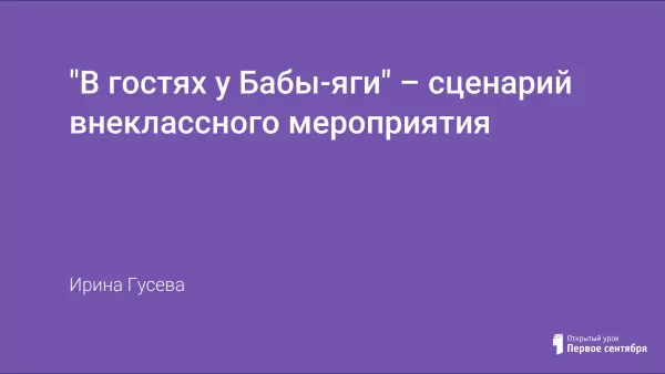В гостях у Бабы Яги - сценарий внеклассного мероприятия для учащихся младших классов. Жанр концерта-викторины даёт возможность проводить эту встречу совместными усилиями общеобразовательной и музыкальной школ. Гибкая структура сценария допускает творческий подход к последовательности и организации концертных номеров. Использование игрового и познавательного материалов позволяет школьникам стать активными участниками представления..